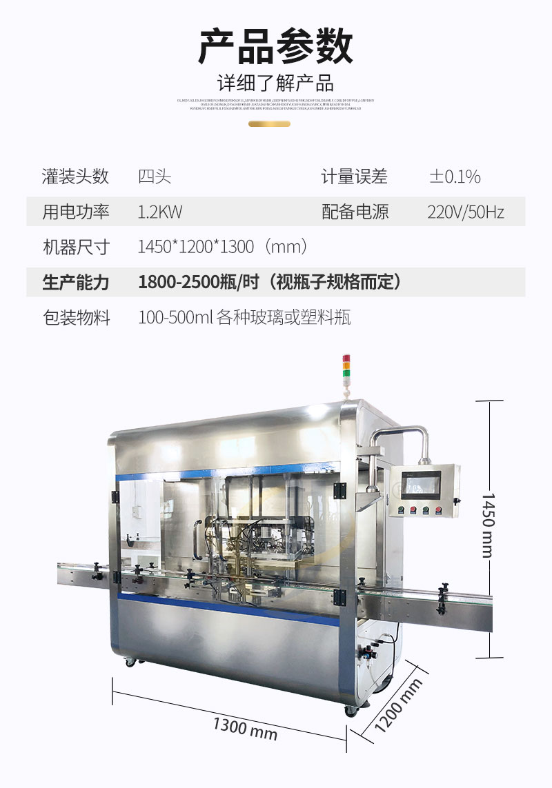 全自動四頭辣椒醬灌裝機適合中小口徑三旋、四旋玻璃瓶調味醬的分裝,適合醬料、含顆粒黏稠物料的灌裝,物料接觸部分均采用